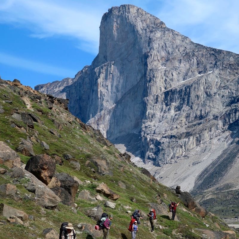 - For 2026 treks, a $1,500 deposit per person is required to secure an “unconfirmed” spot. Weโll confirm if there is space to place you on a 2026 trek by June 4, 2025 and provide an update. An additional deposit of $3,500 will be due November 15th. The balance payment will be due April 1st. Typical group size of 10, including one guide. Maximum group size of 10, including two guides. An additional 5% charge will be applied when your reservation is made to offset fees associated with operating in Auyuittuq National Park.
